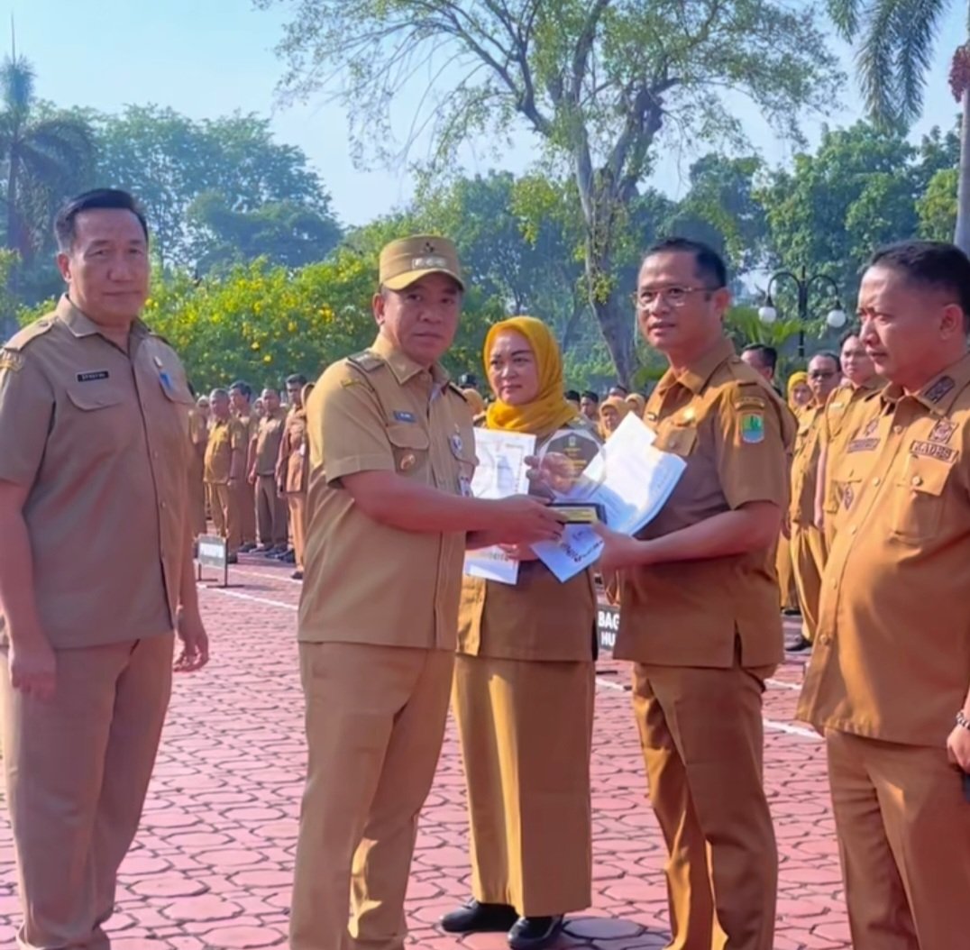 KARAWANG Jarak Info.com | Pada kesempatan Apel pagi Bupati Aep Syaepuloh menyerahkan penghargaan Lomba Desa Tingkat Kabupaten (Anugerah Gapura Sri Baduga) kepada desa- pemenang lomba di Plaza Pemkab Karawang Senin (6/10/25) dihadiri Wakil Bupati,Sekda, Para Pejabat eselon dua dan Para ASN